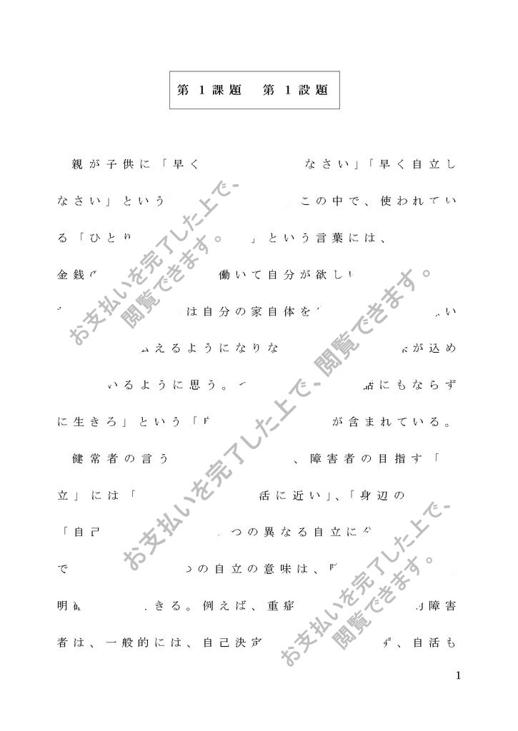 健常者の言う「自立」に対し、障害者の目指す「自立」には「経済的自立=自活に近い」、「身辺の自立」、「自己決定の自立」、3つの異なる自立に分けることができる。この3つの自立の意...