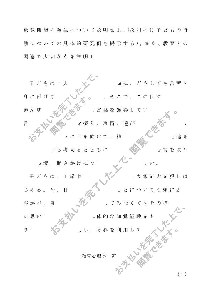象徴機能の発生について説明せよ。(説明には子どもの行動についての具体的研究例も提示する)。また、教育との関連で大切な点を説明しなさい。