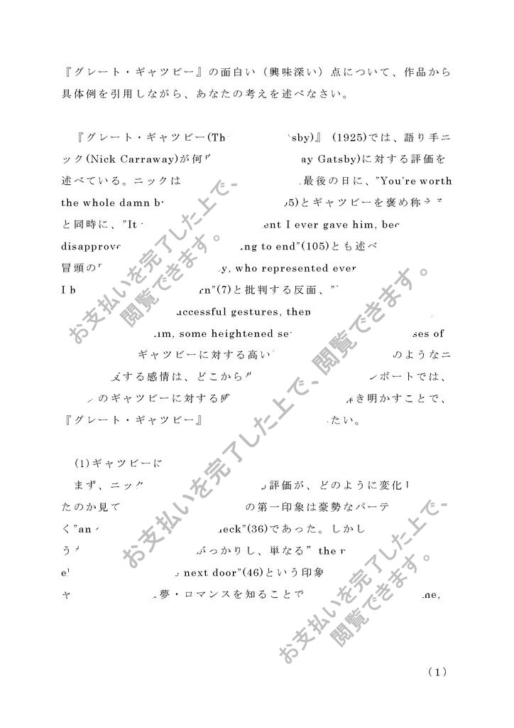 『グレート・ギャツビー』の面白い(興味深い)点について、作品から具体例を引用しながら、あなたの考えを述べなさい。