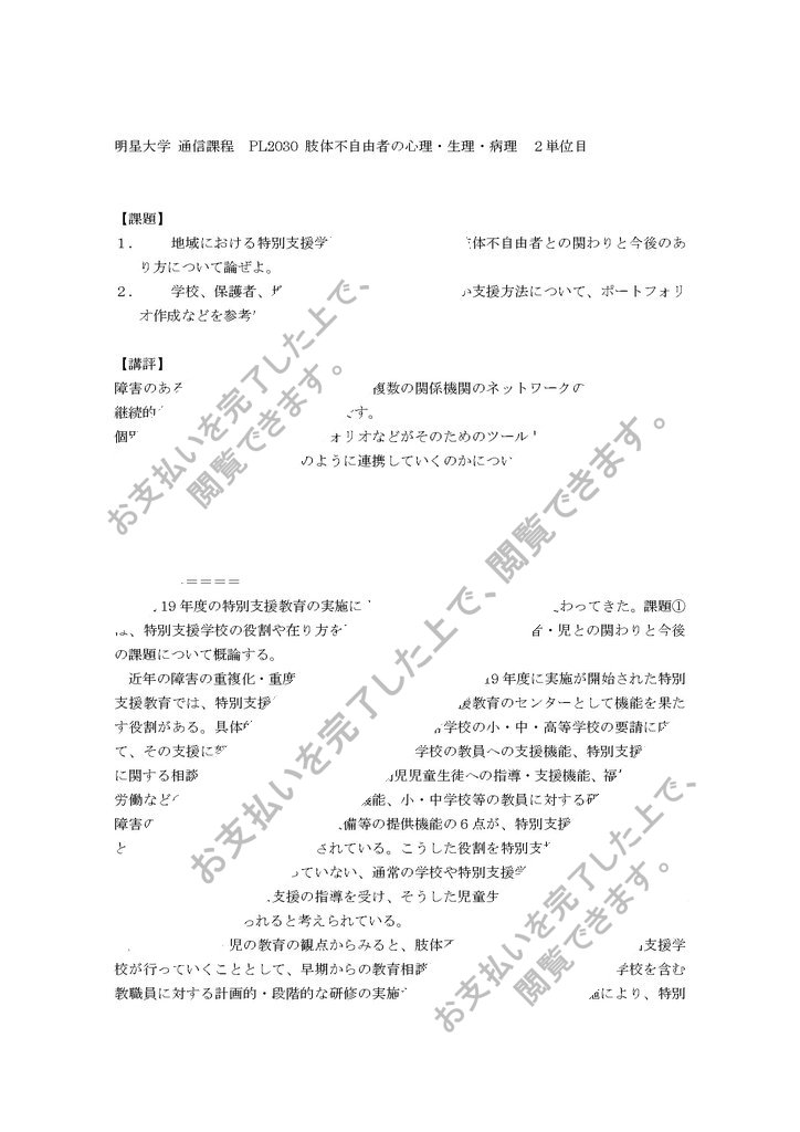 明星大学 通信課程 PL2030 肢体不自由者の心理・生理・病理 2単位目