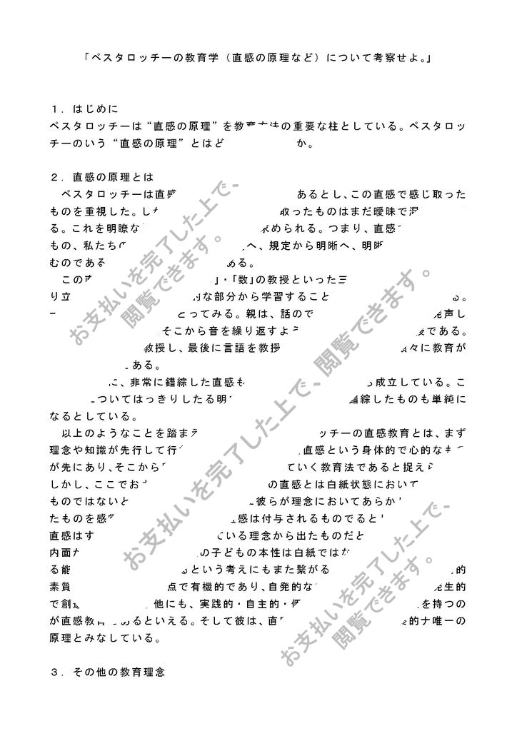 レポート、教育学、ペスタロッチー、教育原論、直感教育