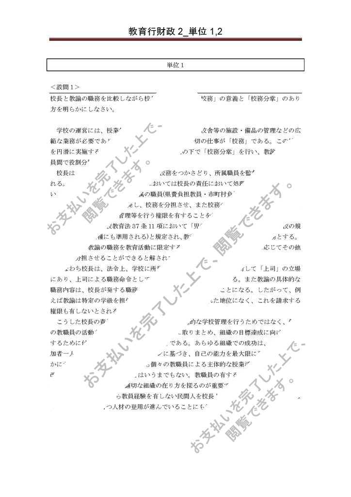 教育行財政2 1,2単位目合格レポート 2015年度~
