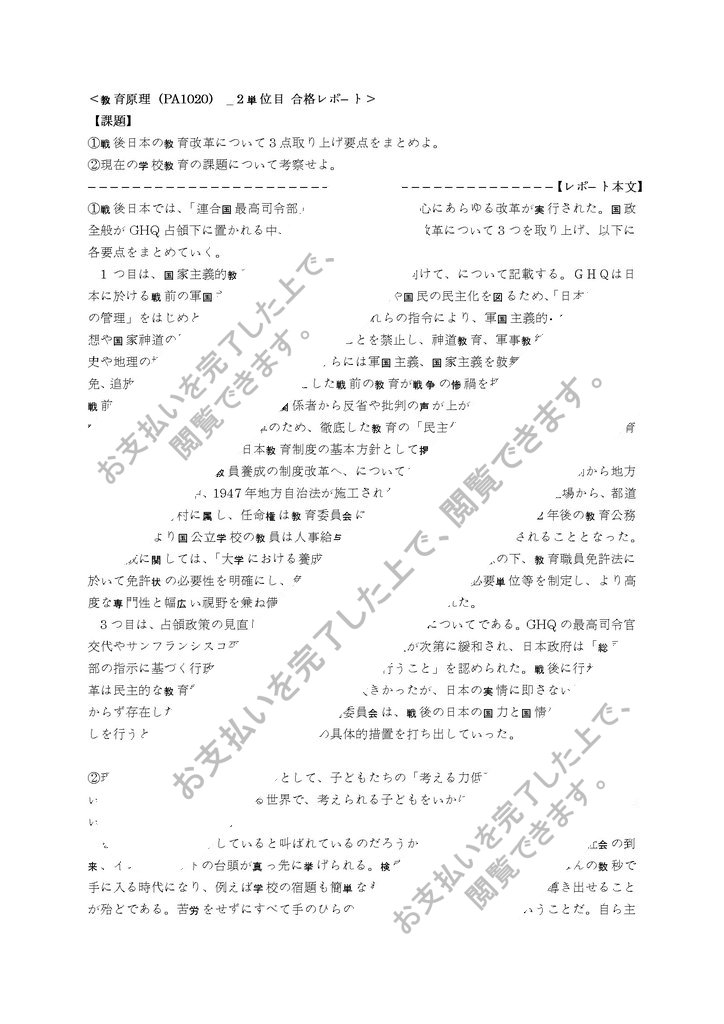 <教育原理(PA1020) _ 2 単位目 合格レポート>