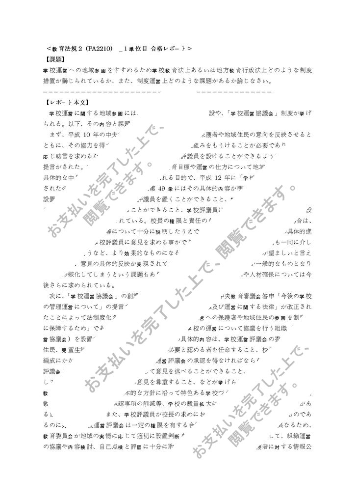 <教育法規2(PA2210) _ 1単位目 合格レポート>