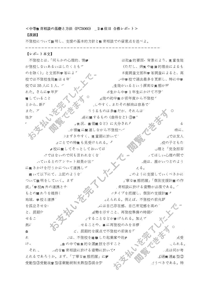 <中等教育相談の基礎と方法(PC3060) _ 2 単位目 合格レポート>