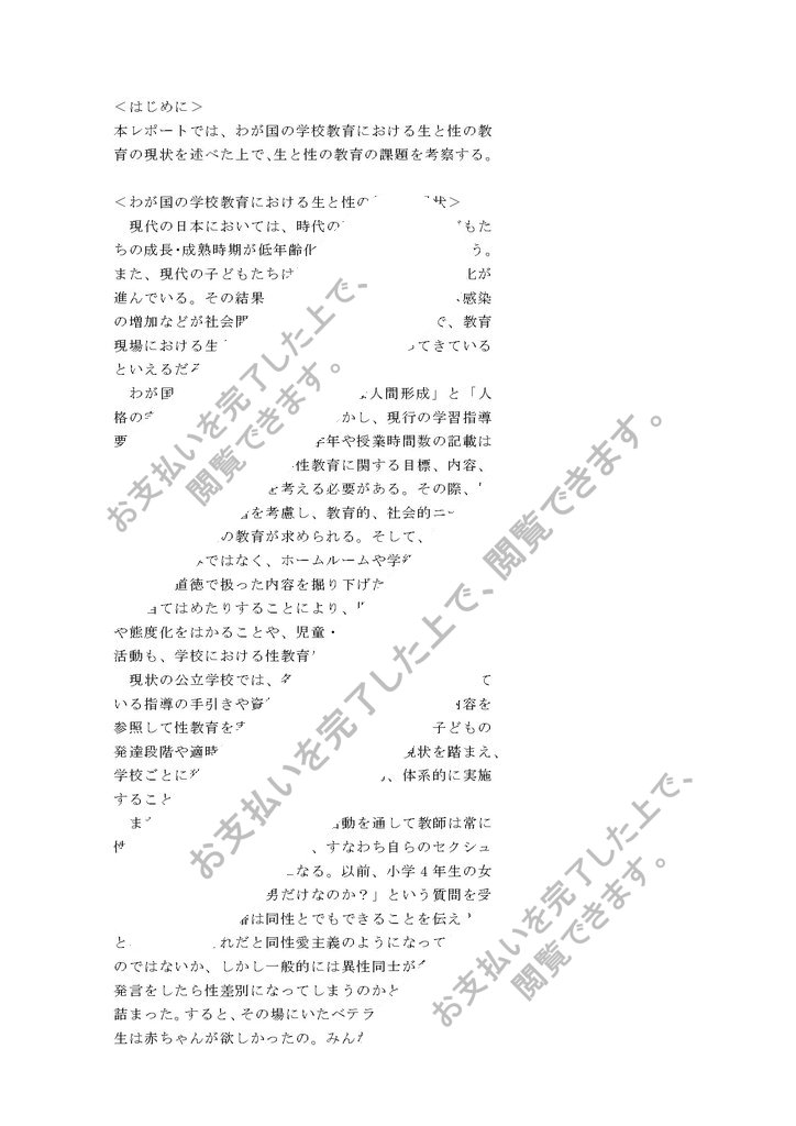本レポートでは、わが国の学校教育における生と性の教