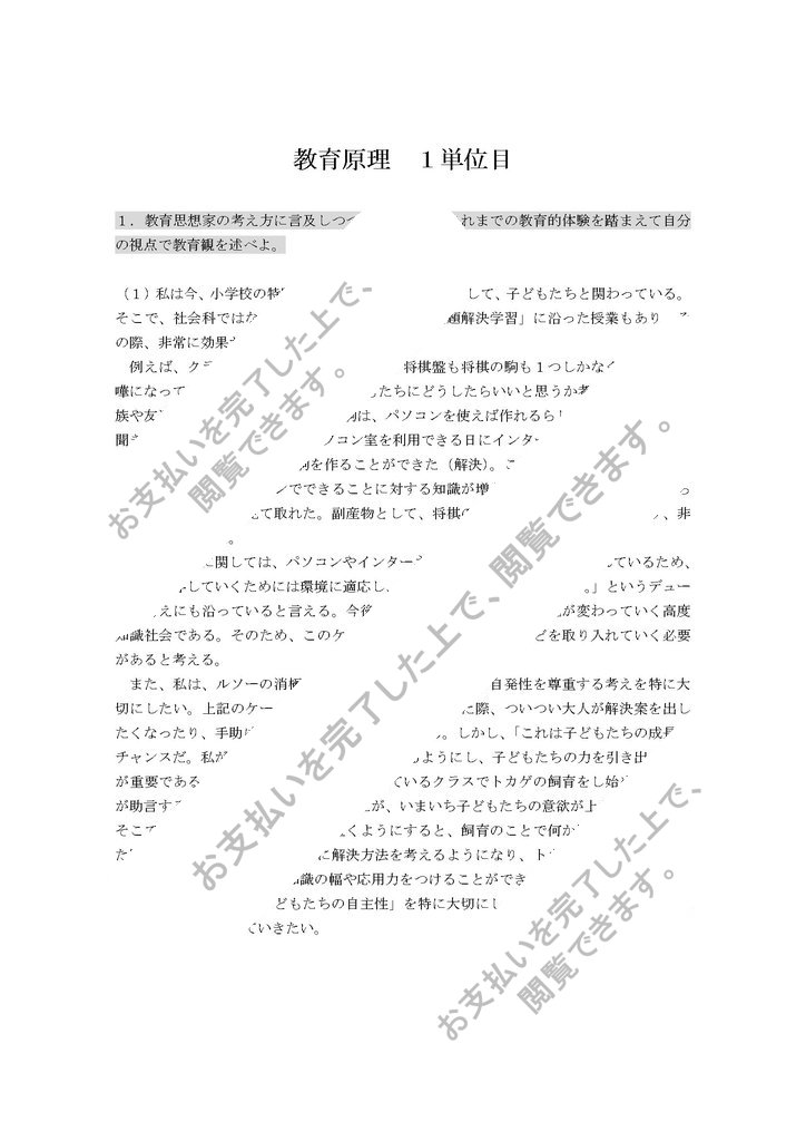 1.教育思想家の考え方に言及しつつ、自分自身のこれまでの教育的体験を踏まえて自分の視点で教育観を述べよ。