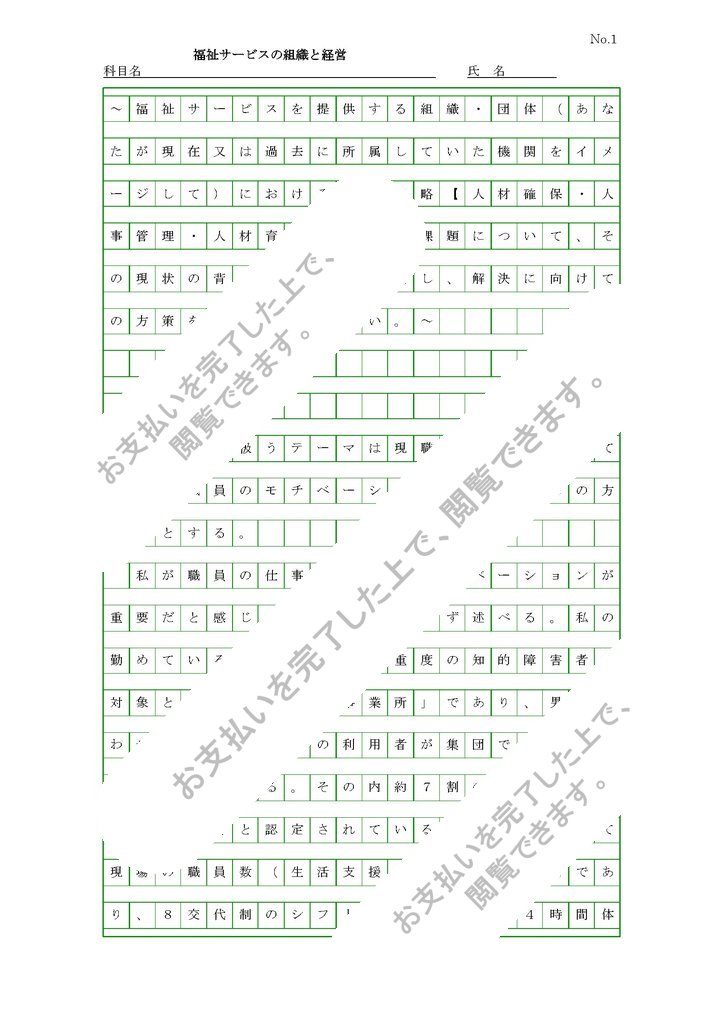 ~福祉サービスを提供する組織・団体(あなたが現在又は過去に所属していた機関をイメージして)における人事戦略【人材確保・人事管理・人材育成など】の課題について、その現状の背景や理由を提起し、解決に向けての方策を述べてください。~