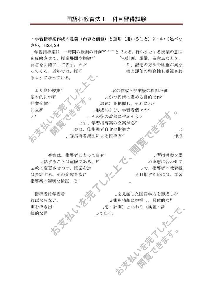 日本大学の平成28-29年度国語科教育法1の科目修得試験問題とその解答です。