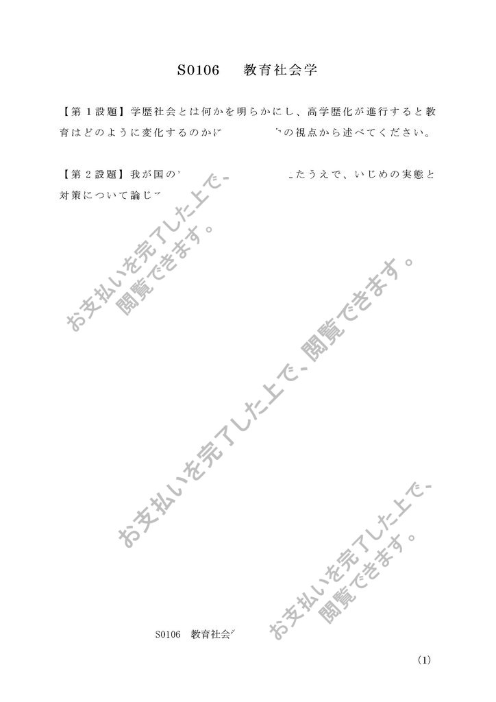 S0106 教育社会学(第1設題・第2設題)セット リポート(ともにA評価)2018【最新版】