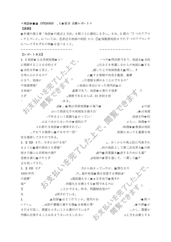<地誌学概説(PE3050) _ 1 単位目 合格レポート>