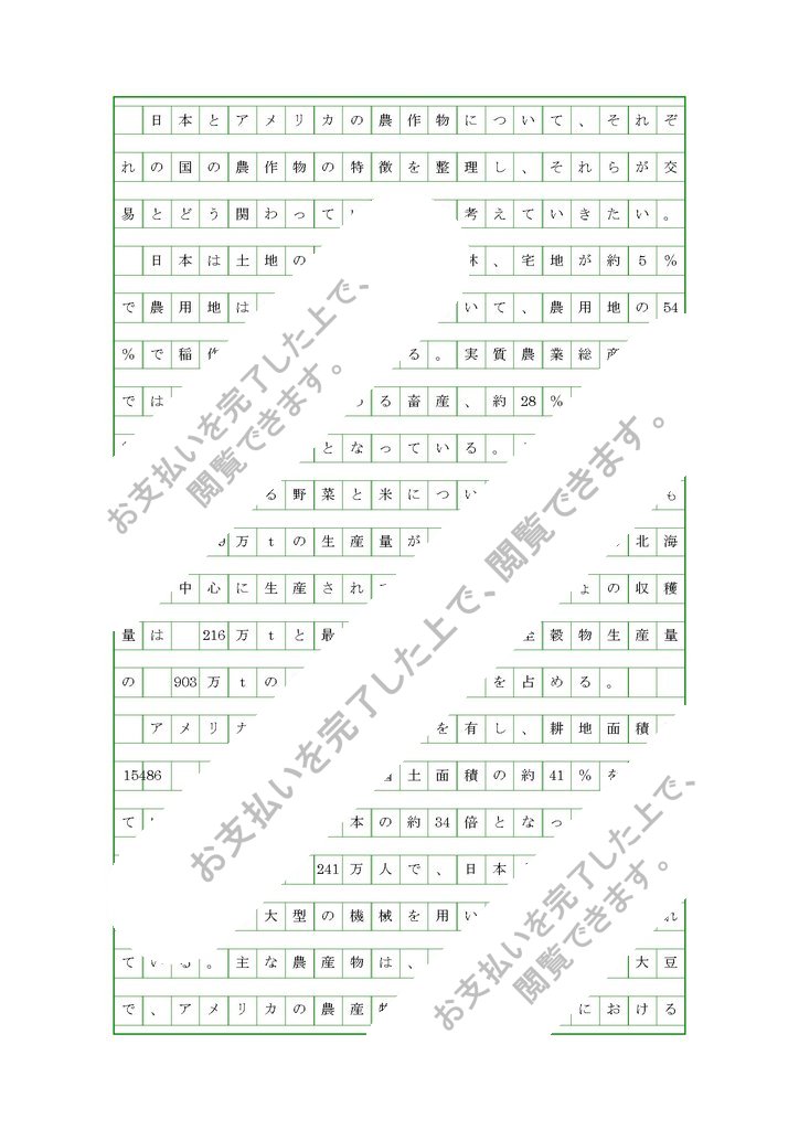 日米間における農作物の公益について、各国の自給率から考えると、アメリ...