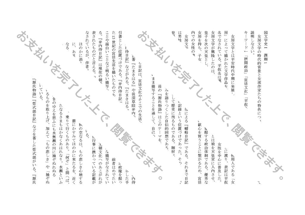 平成31年-平成32年度における日本大学の国文学史 課題1合格レポートです。