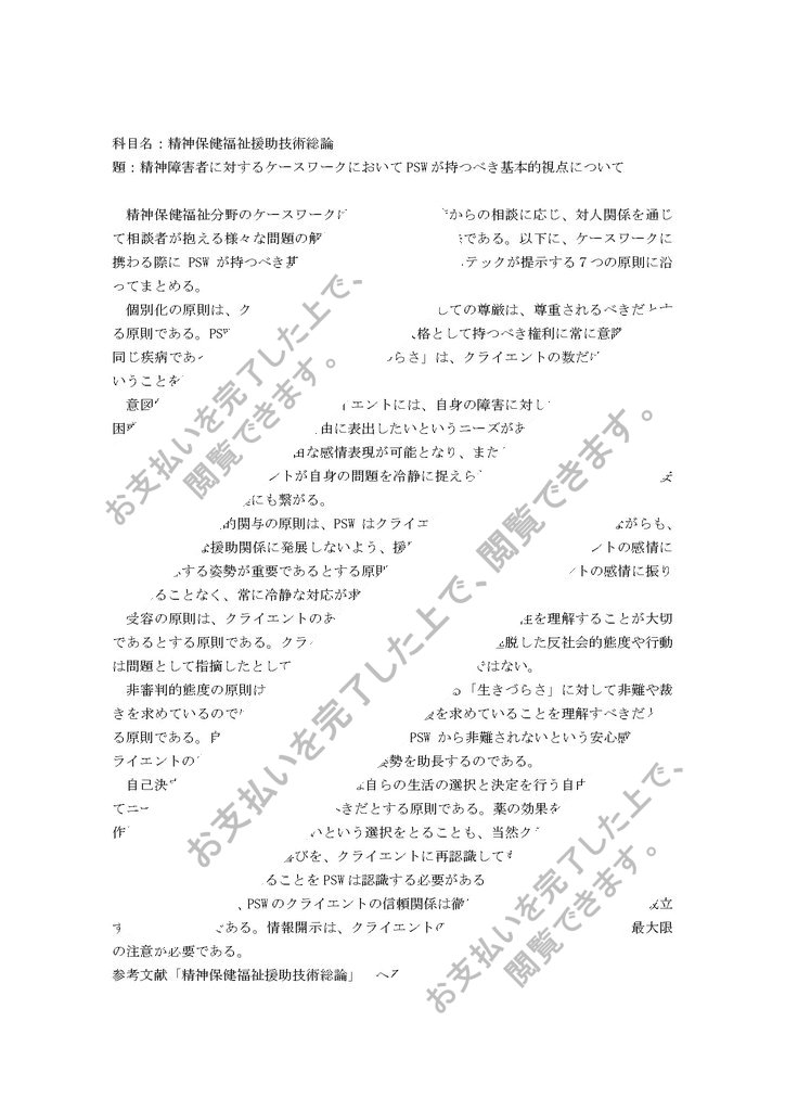 題:精神障害者に対するケースワークにおいて PSWが持つべき基本的視点について