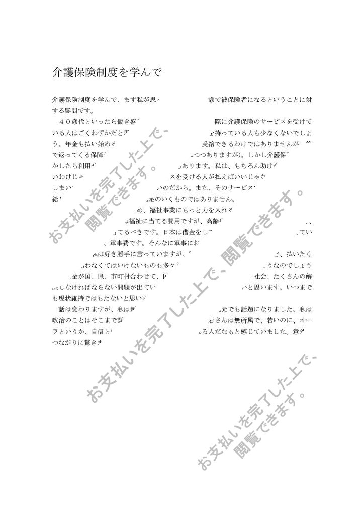 40歳代といったら働き盛りの年代で、その年代で実際に介護保険のサービスを受けている人はごくわずかだと思います。それに対して不満を持っている人も少なくないでしょう。年金も払い始める年齢は20歳と低く、すぐに受給できるわけではありませんが、後で返ってくる保障があります(最近では危ぶまれつつありますが)。しかし介護保険はもしかしたら利用せずに払うだけになる可能性もあります。私は、もちろん助け合いの心が...
