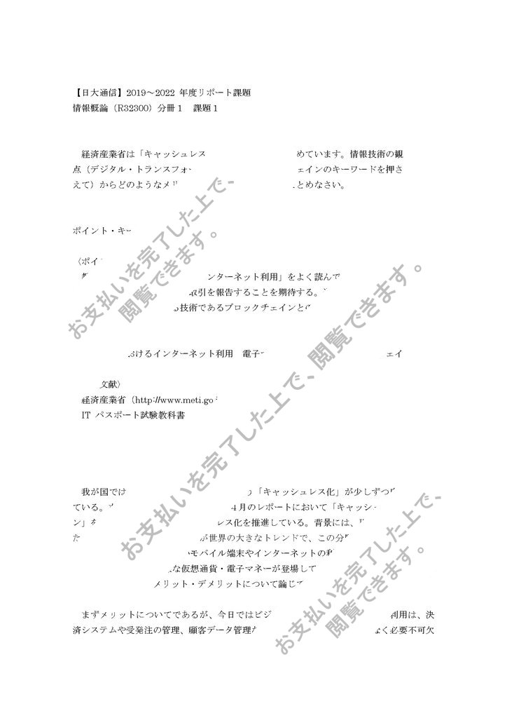 電子マネーに関する情報や、ブロックチェインと仮想通貨について論じてあり、きちんと課題を理解しています。と合格評価を頂きました。