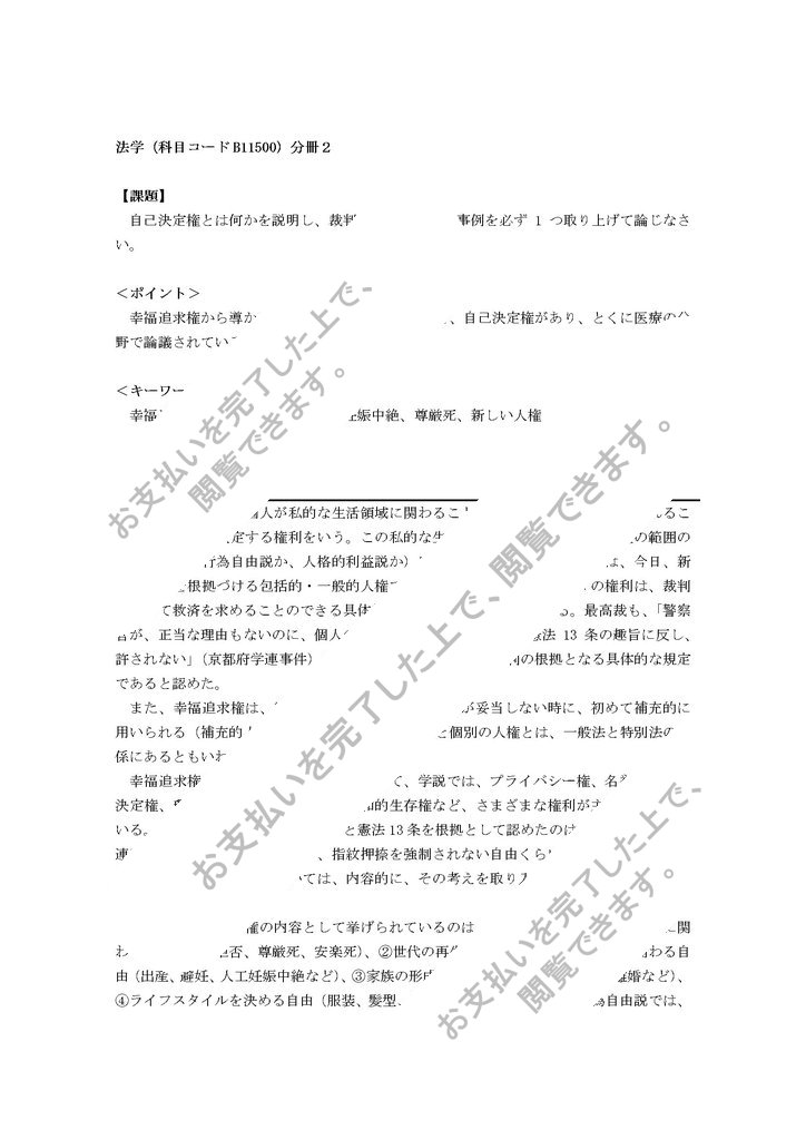 自己決定権とは何かを説明し、裁判上問題となった事例を必ず 1 つ取り上げて論じなさ