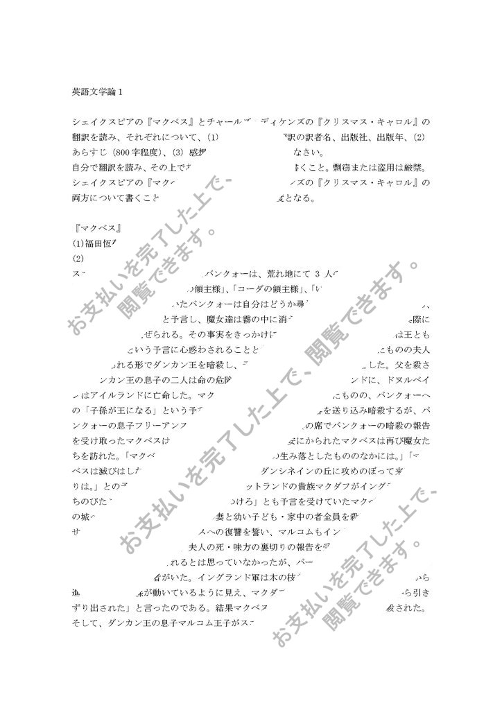 自分で翻訳を読み、その上であらすじをまとめ、感想を書くこと。剽窃または盗用は厳禁。