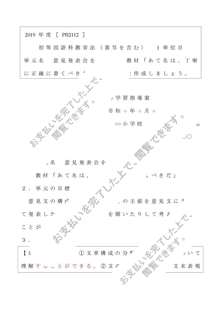 [PB2112] 初等国語科教育法(書写を含む) 1単位目