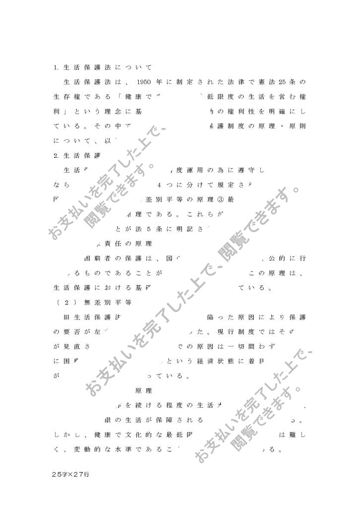 ―精神保健福祉士通信課程―1200文字程度のオリジナルレポートです。科目名【低所得者に対する支援と生活保護制度】課題「生活保護における『保護の原理・原則』について述べよ。」評価:S(95点/100点中)