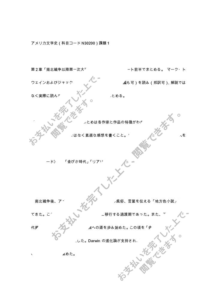 第2章「南北戦争以降第一次大戦前まで」の概要をレポート前半でまとめる。 マーク・トウェインおよびジャック・ロンドンふたりの作品(短編も可)を読み(邦訳可),解説ではなく実際に読んだ作品感想をレポート後半でまとめる。
