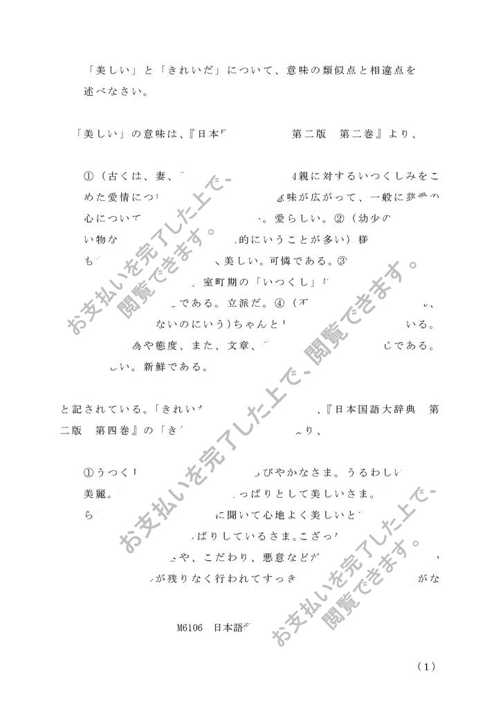 「美しい」と「きれいだ」について、意味の類似点と相違点を述べなさい。