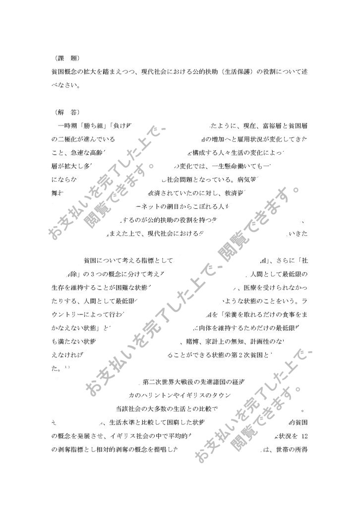 通信制福祉大学の公的扶助論のレポートです。優評価をいただきました。全てコピーして提出するのはおやめください。