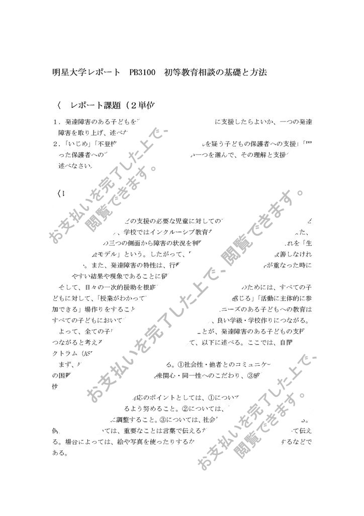 明星大学レポート PB3100 初等教育相談の基礎と方法