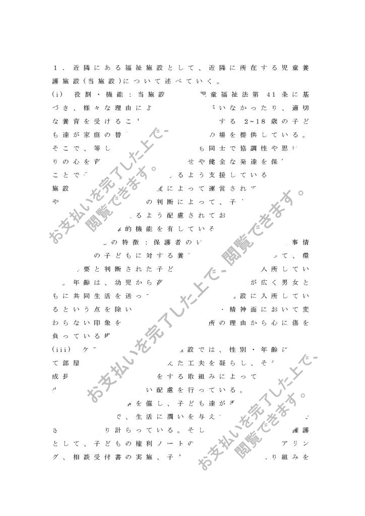 1.近隣にある福祉施設として、近隣に所在する児童養護施設(当施設)について述べていく。