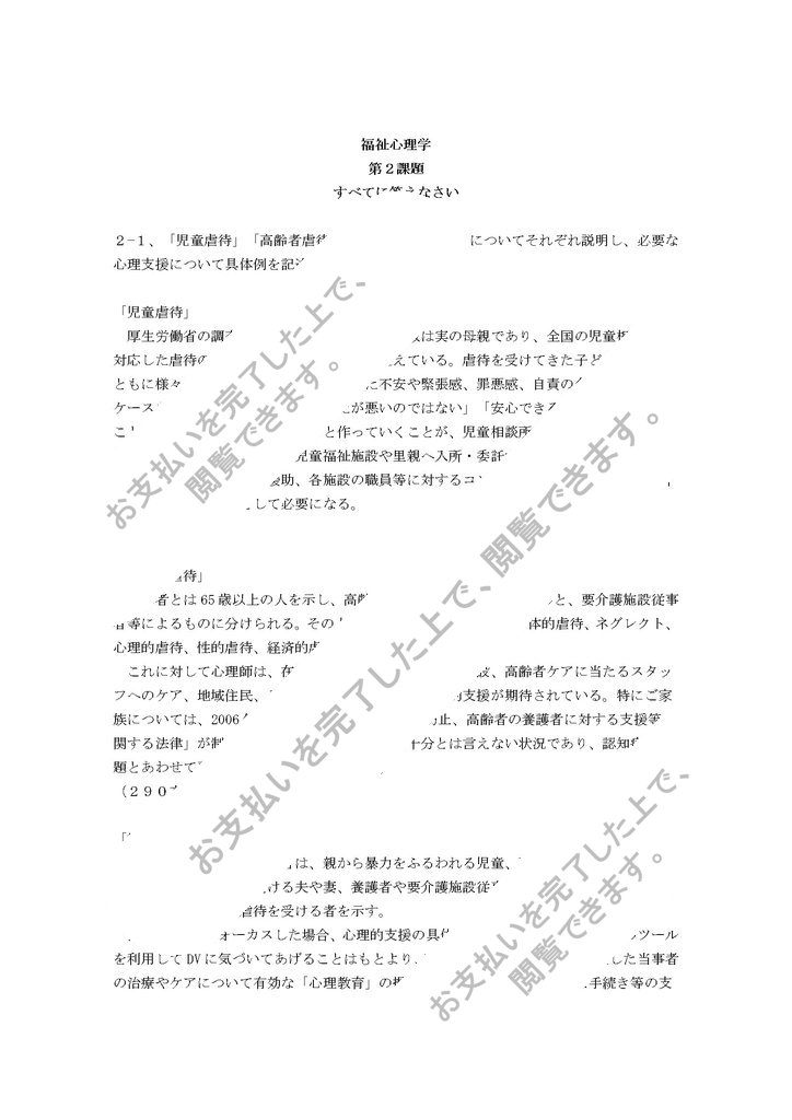 2−1、「児童虐待」「高齢者虐待」「被虐待児(者)」についてそれぞれ説明し、必要な心理支援について具体例を記述してください。300x3