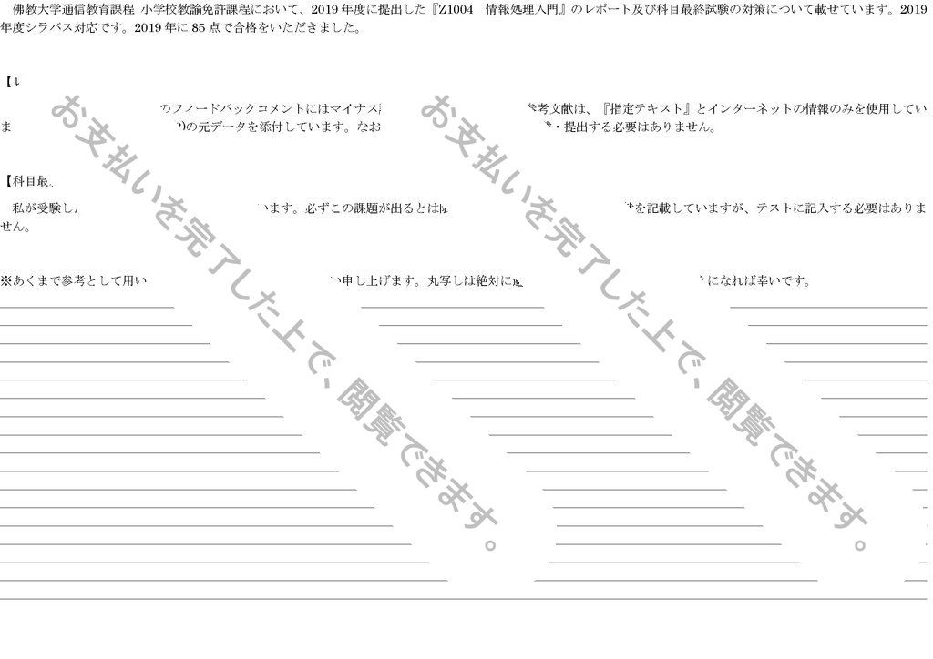 佛教大学通信教育課程 小学校教諭免許課程において、2019 年度に提出した『Z1004 情報処理入門』のレポート及び科目最終試験の対策について載せています。2019
