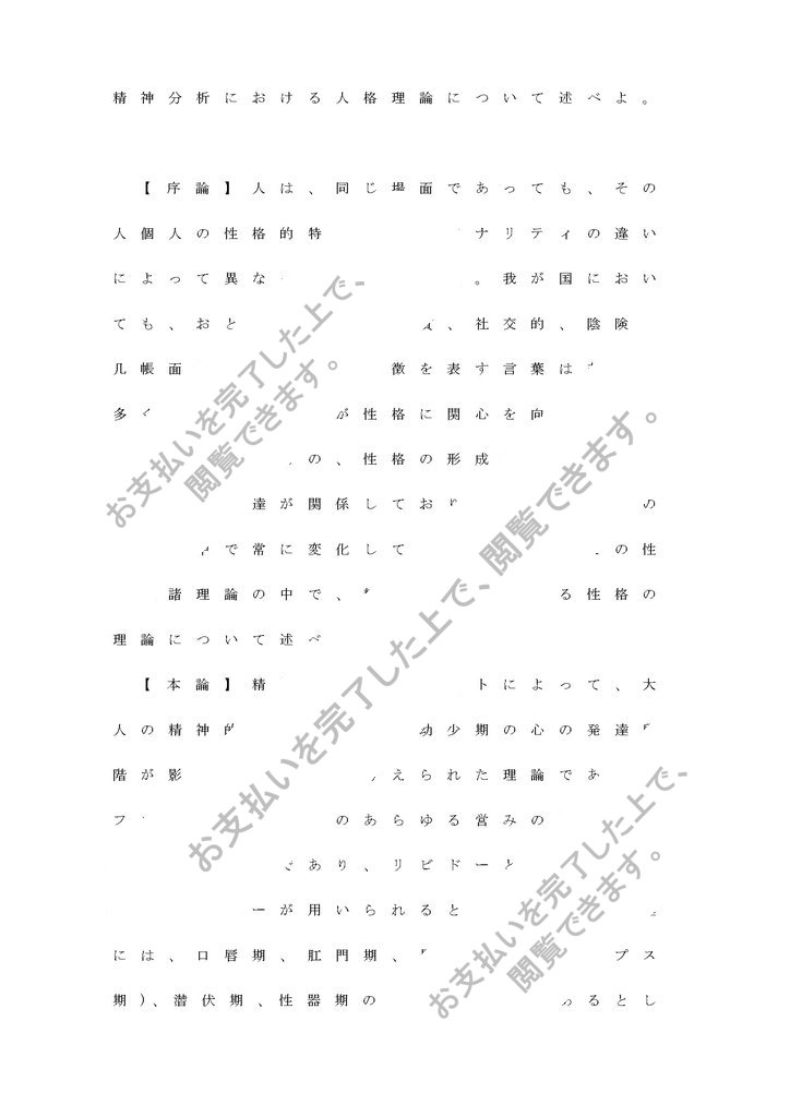 設題:精神分析における人格理論について述べよ。に関するレポートです。