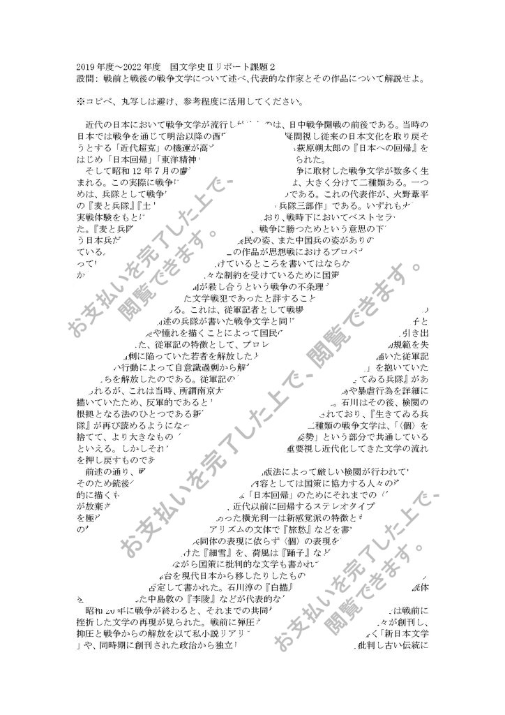 2019年度~2022年度 国文学史Ⅱリポート課題2