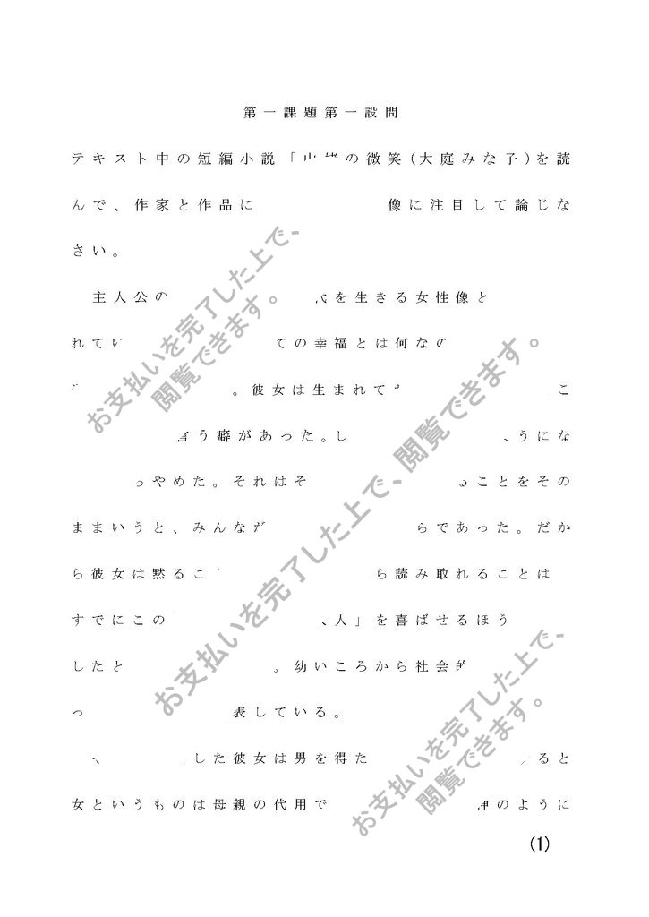 テキスト中の短編小説「山姥の微笑(大庭みな子)を読んで、作家と作品について、女性像に注目して論じなさい。