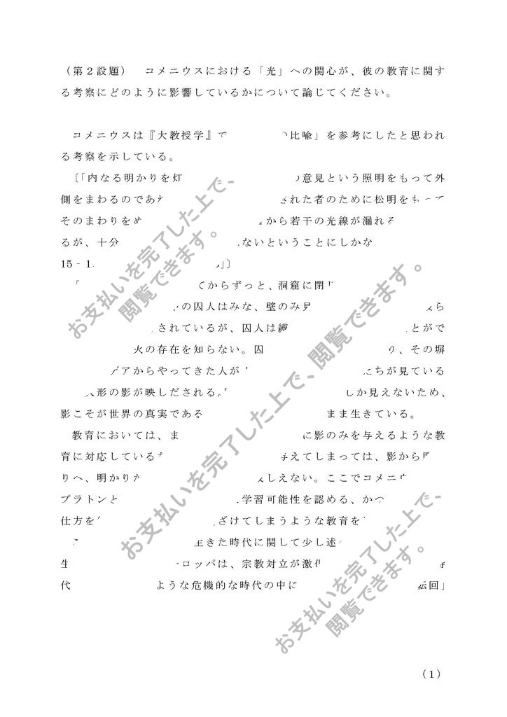 (第2設題) コメニウスにおける「光」への関心が、彼の教育に関する考察にどのように影響しているかについて論じてください。