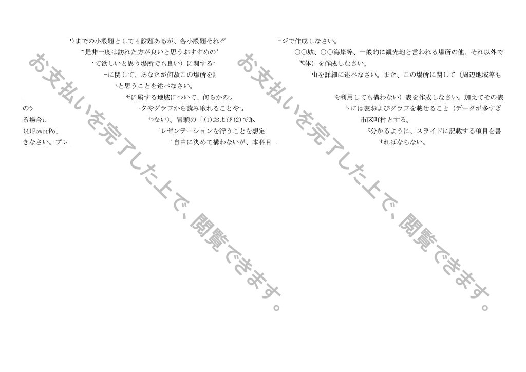 (2) (1)で作成したポスターに関して、あなたが何故この場所を訪れて欲しいと思うのか、その理由を詳細に述べなさい。また、この場所に関して(周辺地域等も含めて)、改善すればさらに良いと思うことを述べなさい。