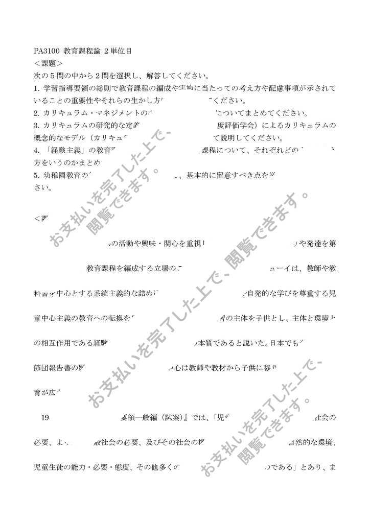 2021年度 明星大学通信教育学部 教育課程論 2単位目の合格レポートです。