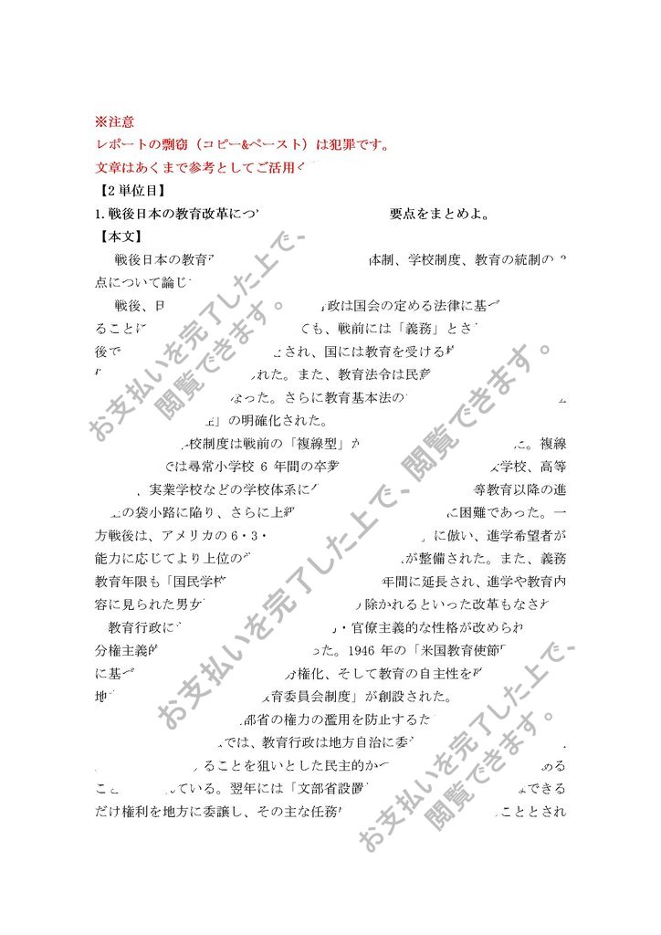 1.戦後日本の教育改革について 3 点を取り上げ、要点をまとめよ。