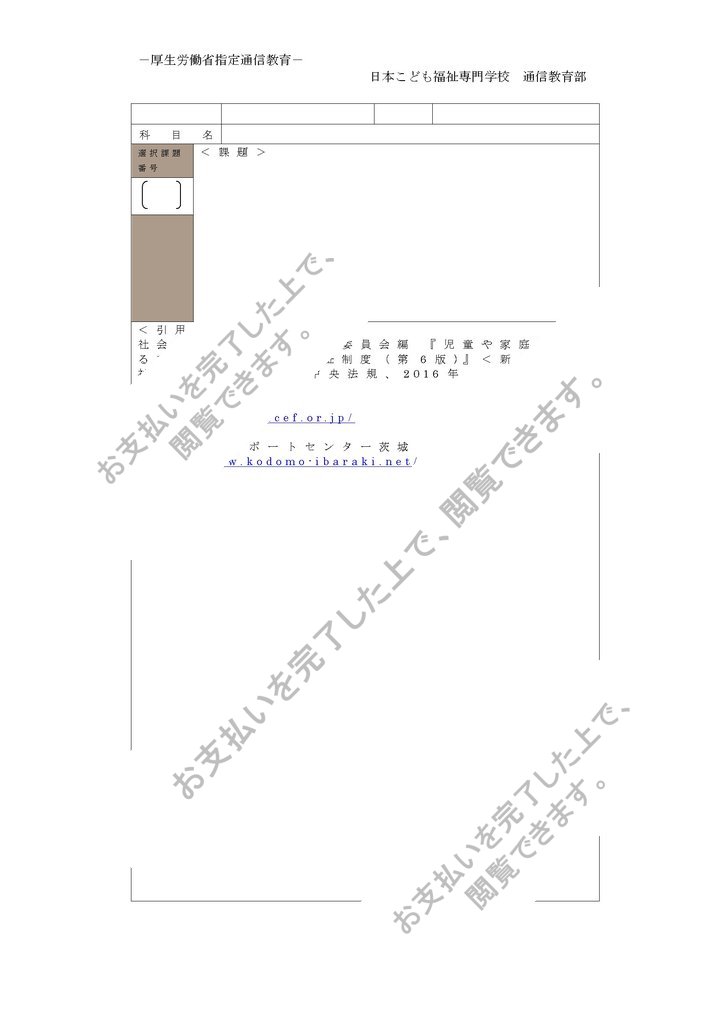 課題:「社会的養護」とは何かを概説し、2016年児童福祉法改正内容に基づく、社会的養護の役割についてまとめなさい。