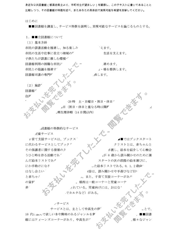 身近な公共図書館(都道府県立より、市町村立が望ましい)を観察し、このテキストに書いてあることと比較しつつ、その図書館の特徴を述べ、またあなたの具体的で実現可能な希望を列挙してください。