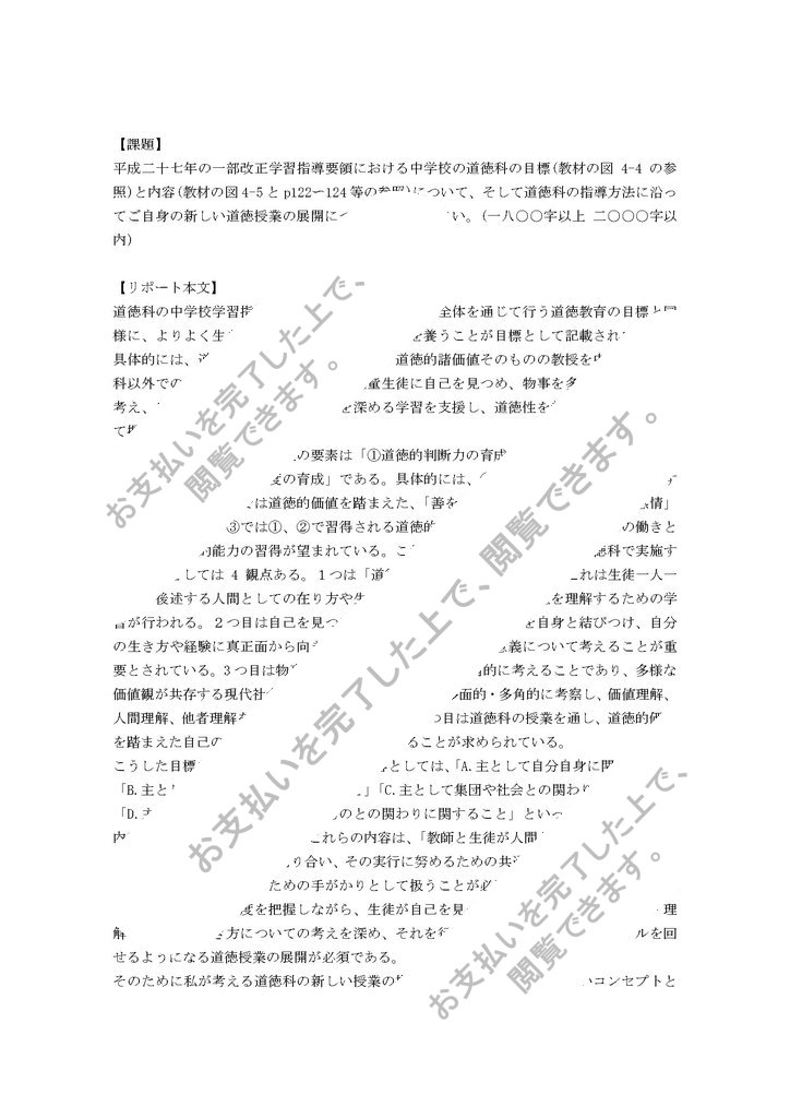 道徳教育の理論と方法 2019~2022年度 リポート課題 S評価のレポートです。