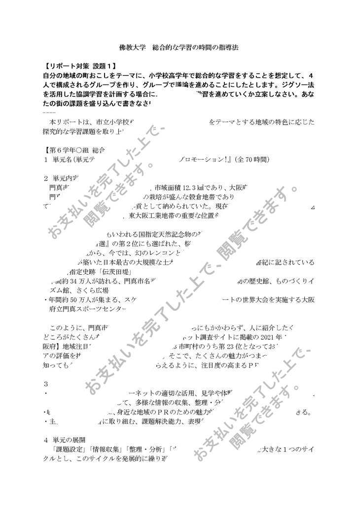 佛教大学 総合的な学習の時間の指導法 リポート対策2題&最終試験対策3題のセットです。A判定合格済みです。