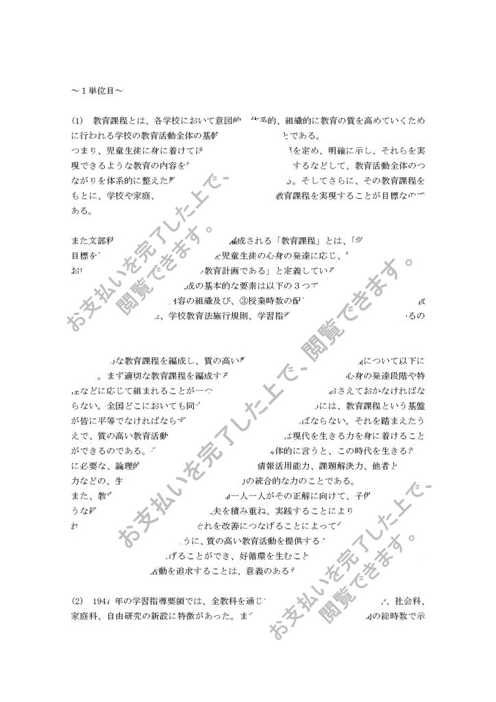 明星大学通信教育部、教育課程論1・2単位目の合格レポートです。1単位目の課題では1.2を選択しました。2単位目は2.4を選択しました。