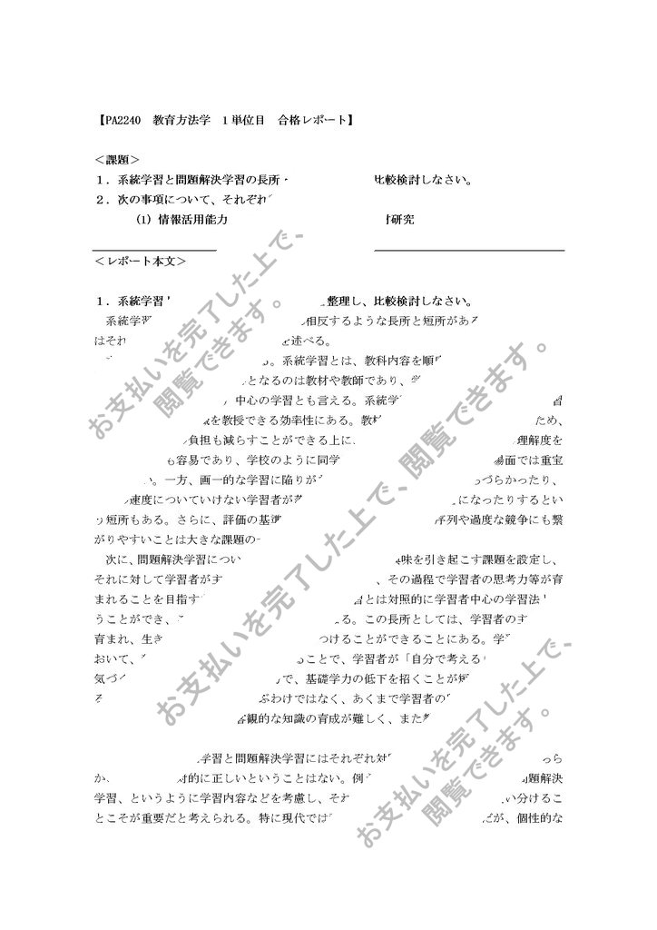 【PA2240 教育方法学 1単位目 合格レポート】
