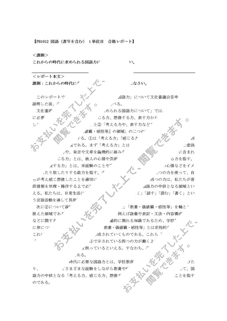 このレポートでは「これからの時代に必要な国語力」について文化審議会答申をもとに説明した後、それを踏まえて自分の考えを述べる。