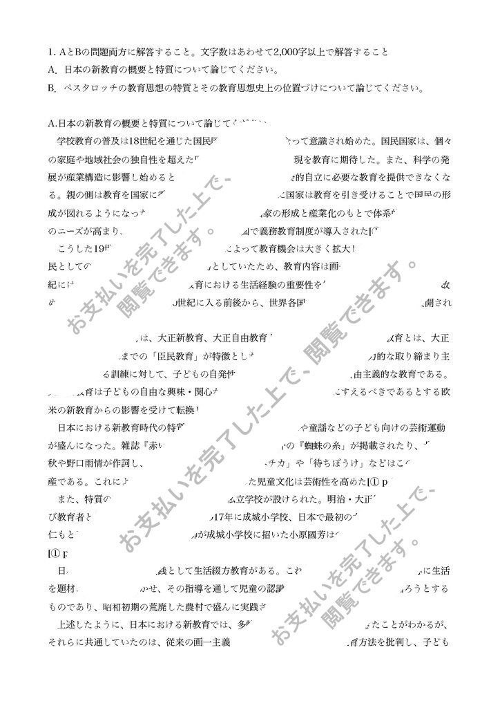 1. AとBの問題両方に解答すること。文字数はあわせて2,000字以上で解答すること