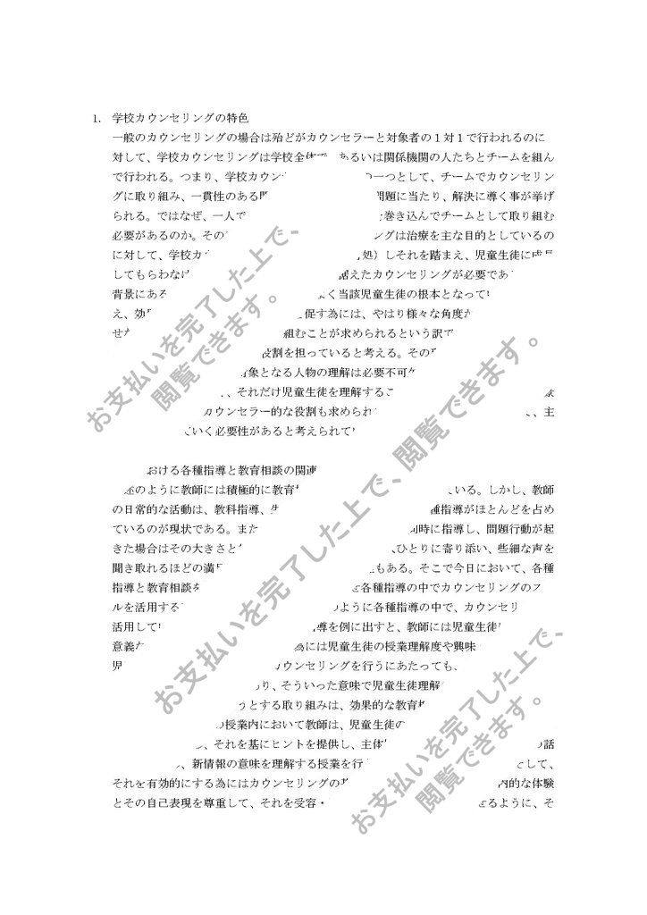 その中でも特に教師は重要な役割を担っていると考える。その理由としては、カウンセリングを行うに当たり、対象となる人物の理解は...