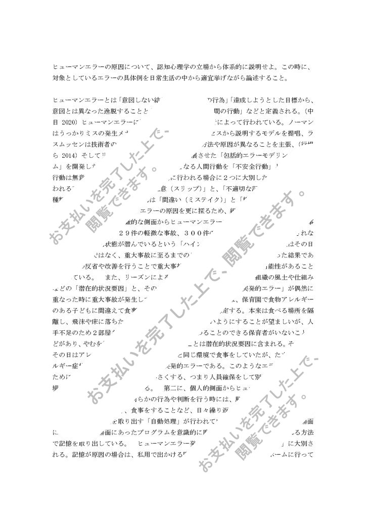 ヒューマンエラーの原因について、認知心理学の立場から体系的に説明せよ。この時に、対象としているエラーの具体例を日常生活の中から適宜挙げながら論述すること。