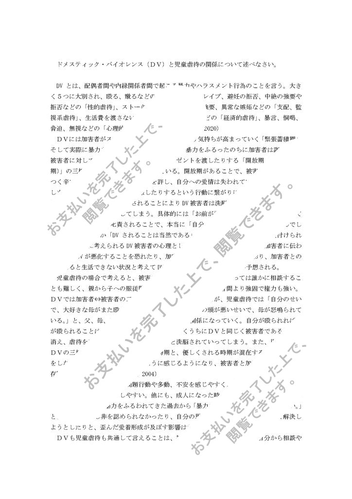 ドメスティック・バイオレンス(DV)と児童虐待の関係について述べなさい。