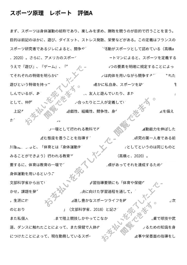 スポーツ原理 レポート 評価A
